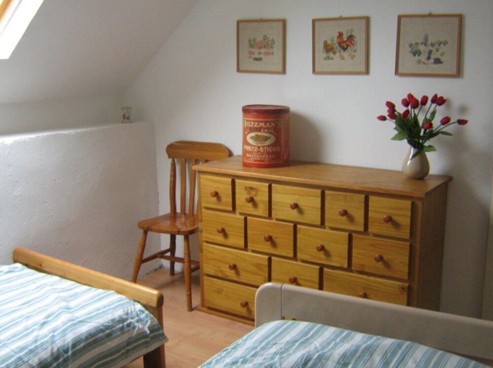 Verder een gezellige woonkamer met een tv met schotelontvangst, dvd-speler en radio-cd-speler. Er is ook een kinderstoel en kinderbedje.
